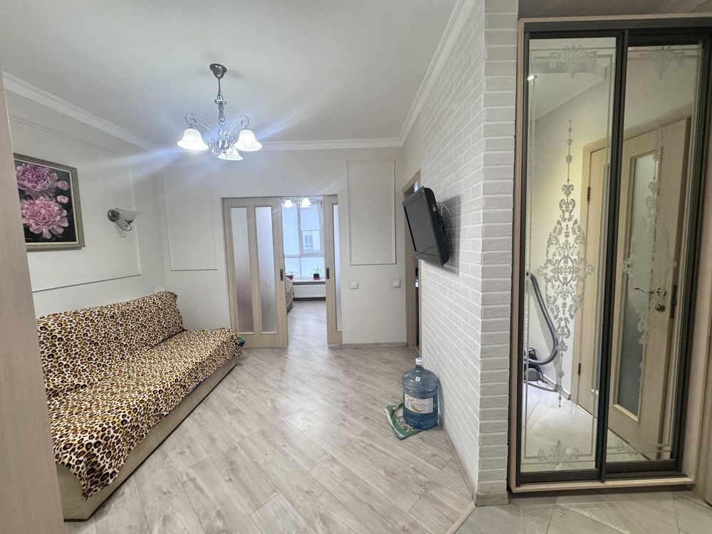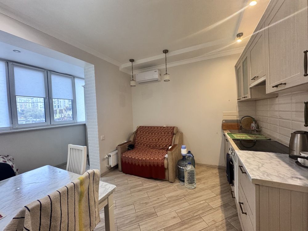 Світла та затишна однокімнатна квартира з якісним ремонтом. Продумане планування-простора кімната, кухня з балконом.
