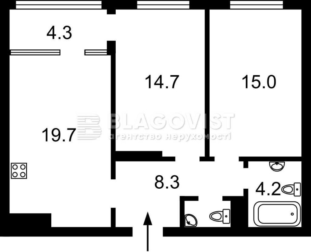 - Планування: кухня, дві окремі кімнати, два санвузла, засклена лоджія.