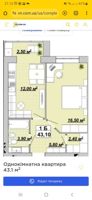 Продається 1 кім.кв віл ВЛАСНИКА
