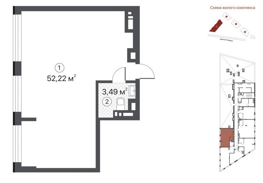 • Общая площадь 55.7 м2