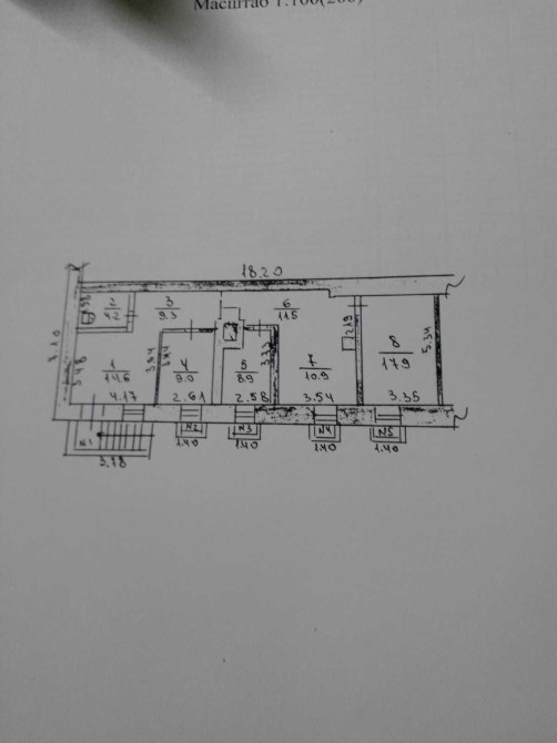 В приміщенні є 5 кімнат, коридор та туалет .