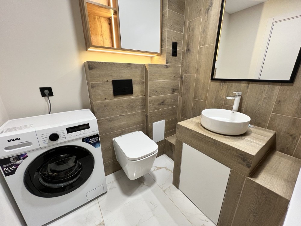 Вана повністю укомплектована, є пральна машинка.