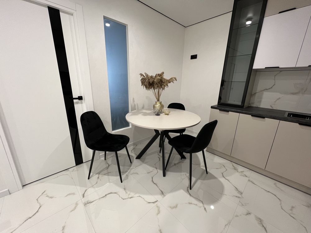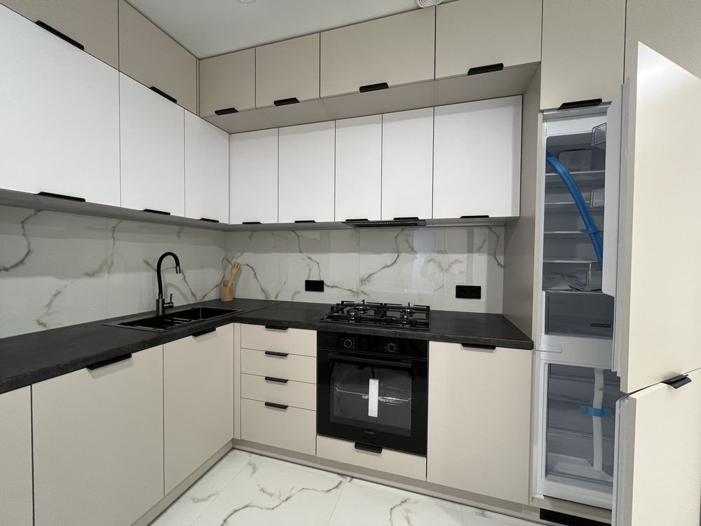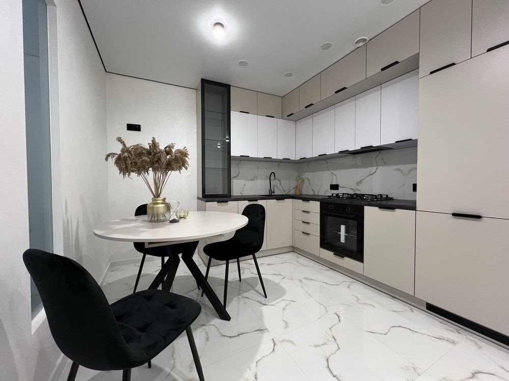 Затишна нова двокімнатна квартира на шостому поверсі 12 поверхового будинку. Простора кухня-студія з вмонтованою побутовою технікою.
