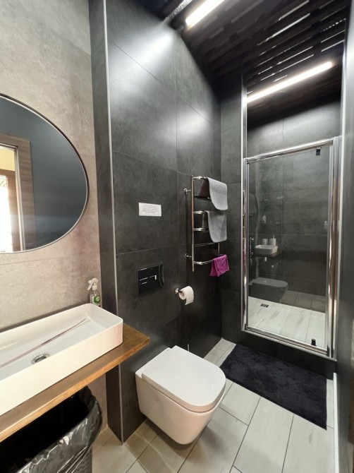 Пропонуємо вашій увазі готель "Friend’s House", який знаходиться у Поляниці (урочище Стаїще). Він складається з двох будинків. По праву сторону розташований перший будинок, побудований у 2007 році, та по ліву сторону - другий, збудований у 2018 році. Земельна ділянка становить 0.054 га. Другий будинок має чотири повноцінних поверхи та п'ятий мансардних. Загальна площа складає 295 кв. м. Він зведений на бутобетонному фундаменті, з монолітним каркасом, колони якого заповнені керамблоками. Тип перекриття дерев'яні балки. Дах будинку вкритий металочерепицею, та утеплений мін ватою товщиною 20 см. Стіни також утеплені пінопластом товщиною 10 см. Будинок має три входи з металопластиковими дверима. По всьому будинку встановлені двокамерні енергозберігаючі вікна металопластикові. Підлога в житлових кімнатах (номерах) викладена ламінатом, у коридорах, санвузлах та допоміжних приміщеннях - плиткою з підігрівом. Опалення здійснюється твердопаливним котлом на пелетах потужністю 45 кВт (приблизний розхід пелетів - 10 тонн за сезон) та електрокотлом потужністю 12 кВт, який має два режими роботи: 6 кВт і 12 кВт. Також на четвертому поверсі знаходиться комін. Вода подається від резервуара об'ємом 30 тонн, який автоматично наповнюється зі скважини або криниці. Також встановлені фільтри для очищення води. На гарячу воду встановлений бойлер на 500 л. На передньому подвір'ї розташовано автономний біосептик, який обслуговує два будинки. До готелю підведено 15 кВт електроенергії, а також є генератор на 30 кВт для трьох будинків. На першому поверсі, при вході, розташовано хол, кімнату для лижного спорядження, пральну кімнату, котельню та складське приміщення, яке можна в подальшому перебудувати за бажанням. На другому поверсі розміщено три номери: двомісний, тримісний та чотиримісний сімейного типу з двома кімнатами. На третьому поверсі аналогічно розташовані номери. На четвертому поверсі розташована їдальня з панорамним вікном, що має чудовий вид на гору Говерлу. Також тут знаходиться загальна кухня, кімната для персоналу, окремий санвузол та місце для будівництва сходів на п'ятий поверх. У кожному номері є санвузол та душова кабіна. Перший двоповерховий будинок має загальну площу 193 м2 та включає сім кімнат, кімнату для персоналу, велику їдальню та кухню загального користування. Три санвузли і котельня, де знаходяться твердопаливний котел (пелетний, дров'яний), бойлер на 300 літрів та електрокотел. Котельня також має вихід на внутрішній двір. На внутрішньому дворі знаходиться альтанка на пів відкритого типу, крісла-гойдалки, а також парковка на чотири авто. На передньому подвір'ї розташована парковка на сім авто. Ці два будинки огороджені брамою з фарбованої дошки. Готель має дуже гарні відгуки: на Google Maps 50 відгуків з середньою оцінкою 4,9 з 5, а на Booking - 14 відгуків з середньою оцінкою 9,8 з 10.