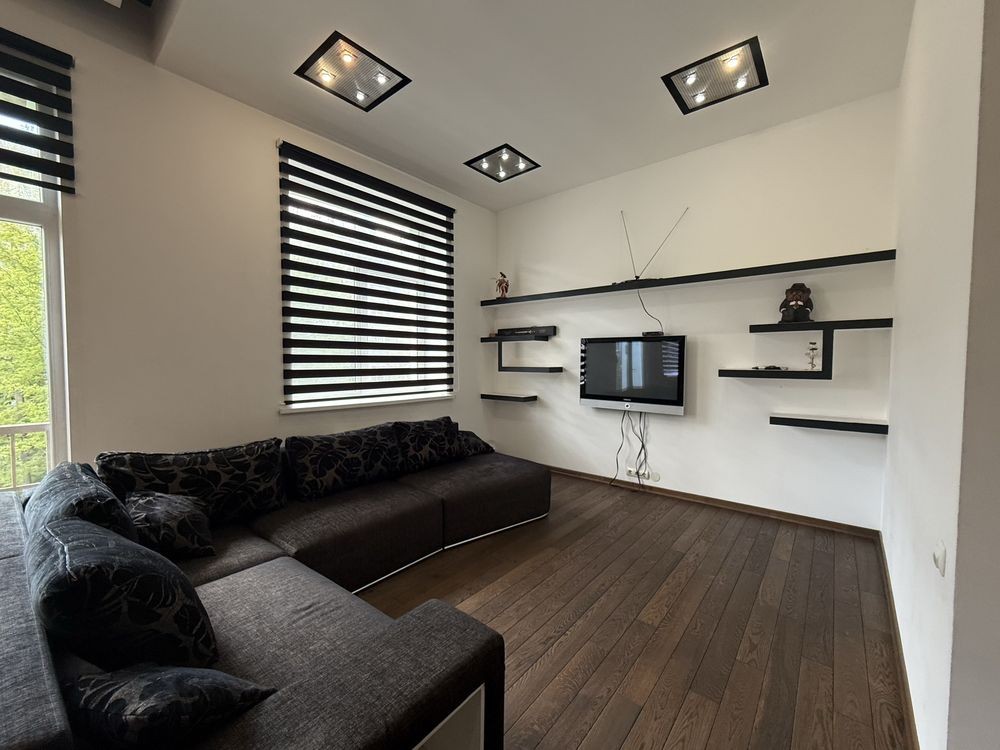 Два санвузли на поверхах , дві спальні , зал кухня студія з балконом .