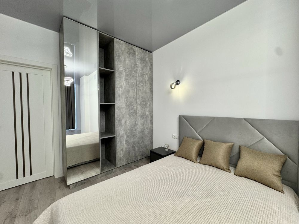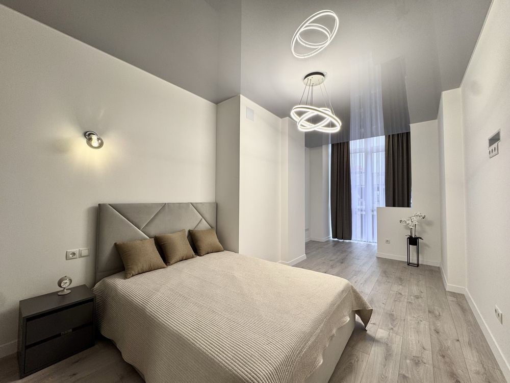 Оптимальна площа 103 м2, кухня студія, 2 окремі великі кімнати. Зроблений свіжий дизайнерський ремонт, нові меблі та техніка, ніхто не проживав. Є гардеробна.