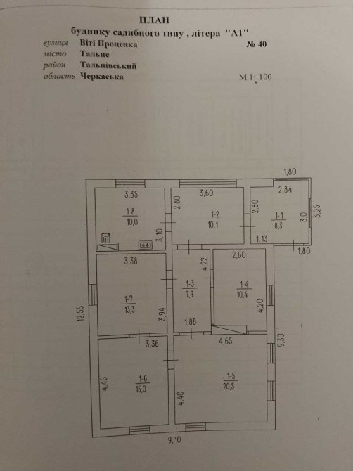 Продається приватний будинок 9*12 в м. Тальне по вул. Віті Проценка, 40. Житлова площа 95.5 кв.м2. Загальна площа земельної ділянки 10 соток. Будинок по плануванню складається з 4 кімнат, коридор, кухня, веранда. В будинку індивідуальне газове опалення, централізоване водопостачання на подвір'ї. Надвірні споруди: гараж, літня кухня, погріб, кладовка, сарай.