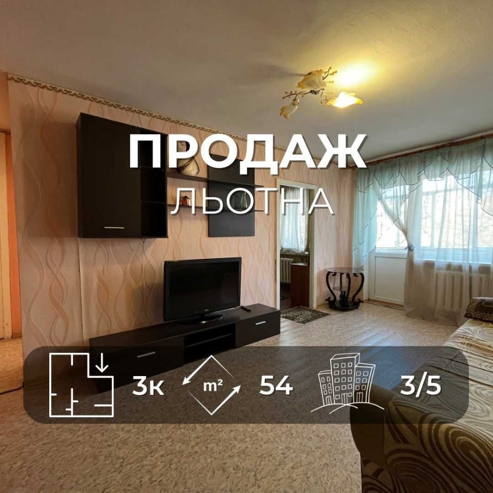 Продається простора 3-кімнатна квартира 54 м?, Вул. Льотна. LD