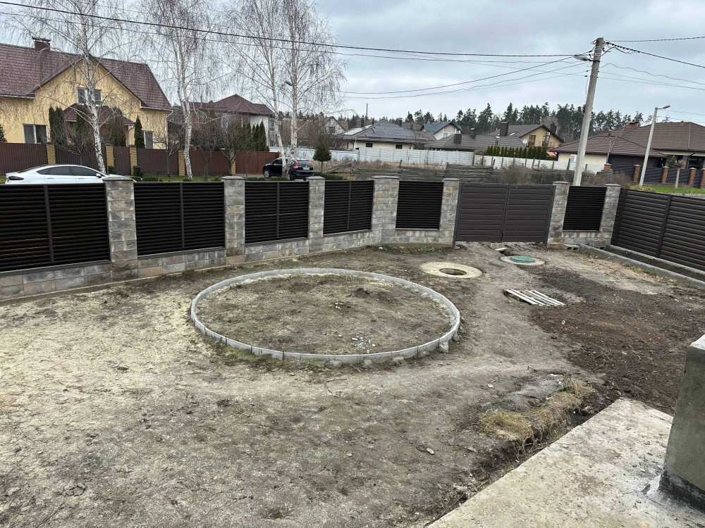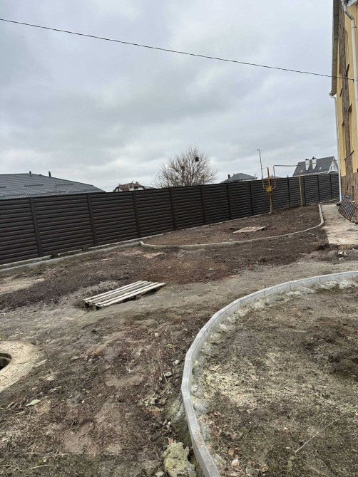 • Ландшафтний дизайн з озелененою ділянкою, доріжками та місцем для барбекю
