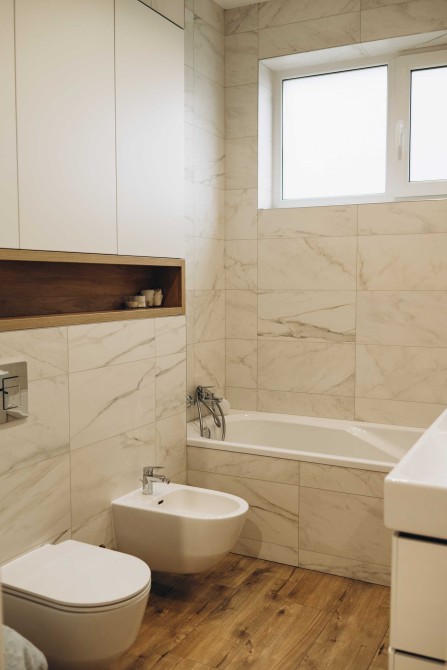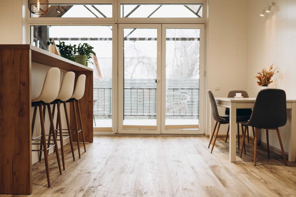 Практичне та тепле покриття підлоги (кварцвініл), дуже комфортно ходити босоніж