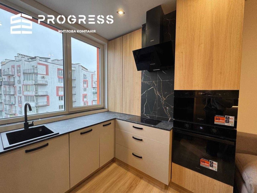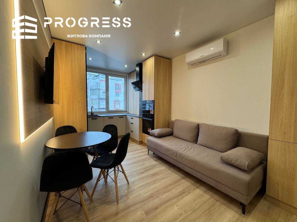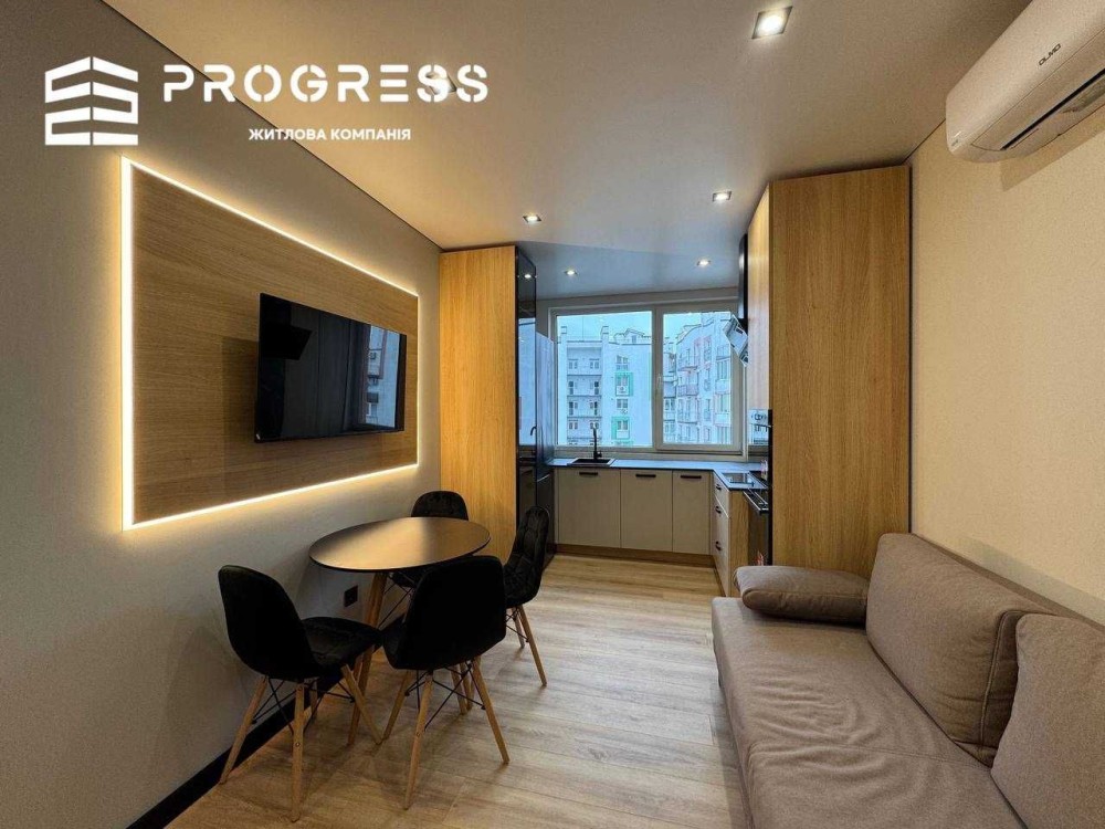 Сучасний дизайн, окрема спальня, панорамне вікно на кухні, багато підсвіток та тепла атмосфера