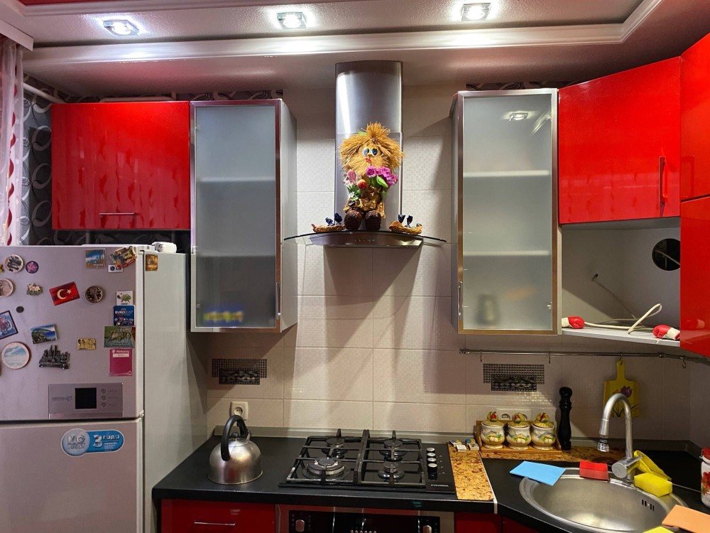 пластиковые окна, бойлер, металлическая входная дверь (красный декор), 15минут пешком до центра,есть рядом супермаркет,остановки с регулярным автобусами в разные стороны города, тихий район,рядом школа .