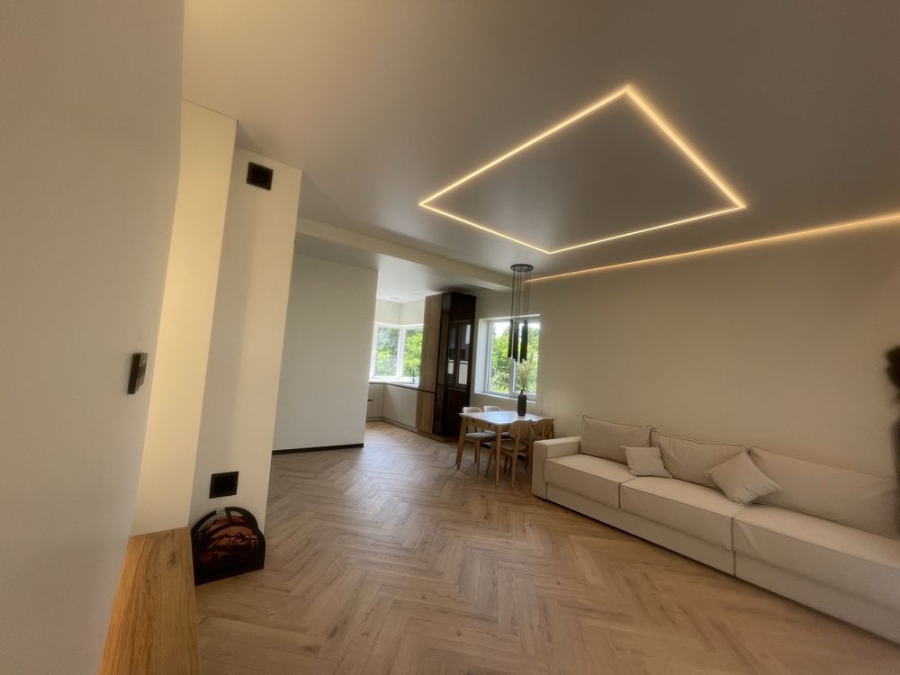 Велика плазма, камін, гарний диван, обідня зона — затишок і стиль у кожній кімнаті
