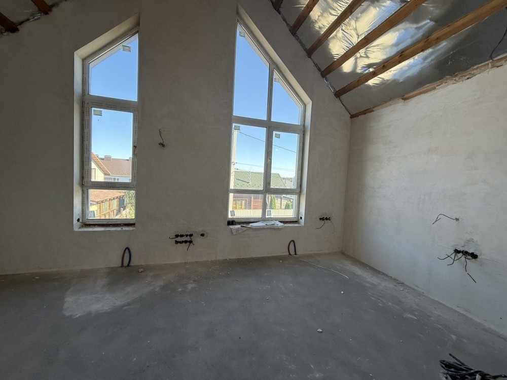 З частковим ремонтом: зроблена стяжка, тепла підлога, розведена електрика і вся сантехніка, встановлена інсталяція, утеплена кровля, газовий 2ох контурний котел.