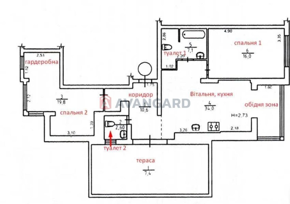 ■ 3 кімнати (2 окремі спальні + вітальня)