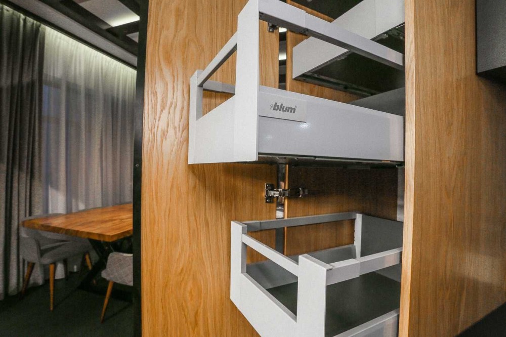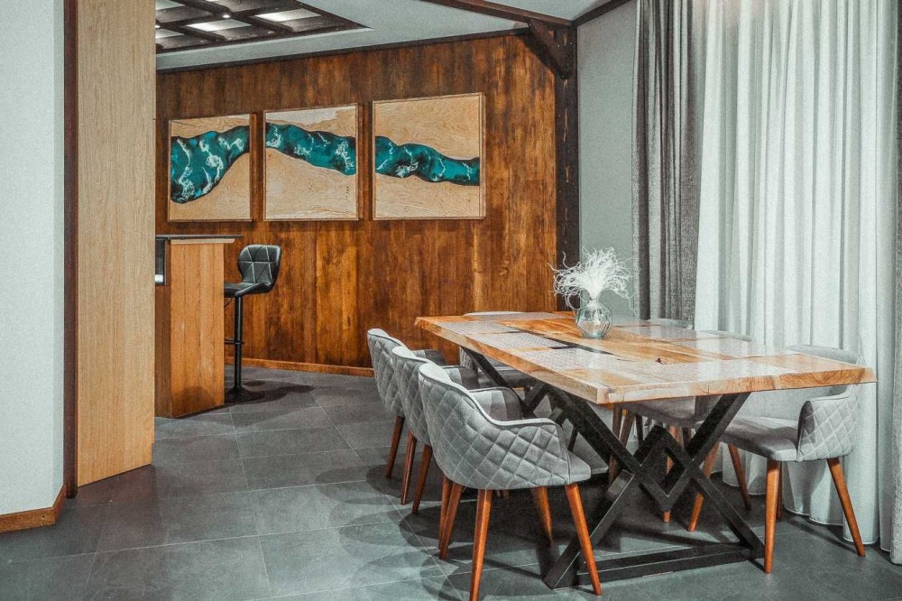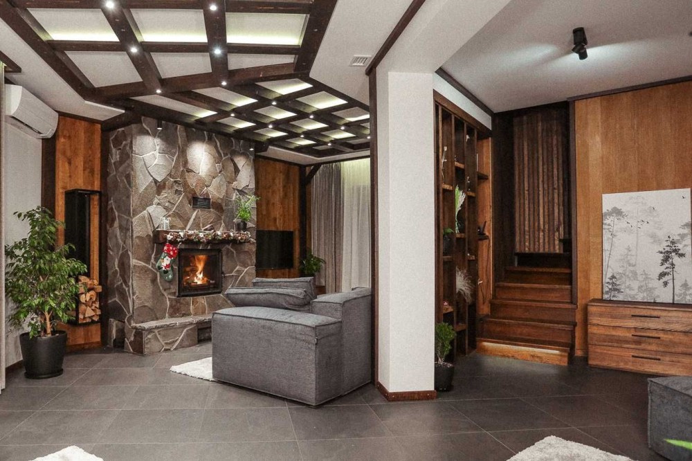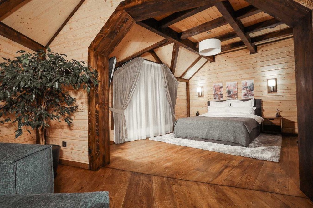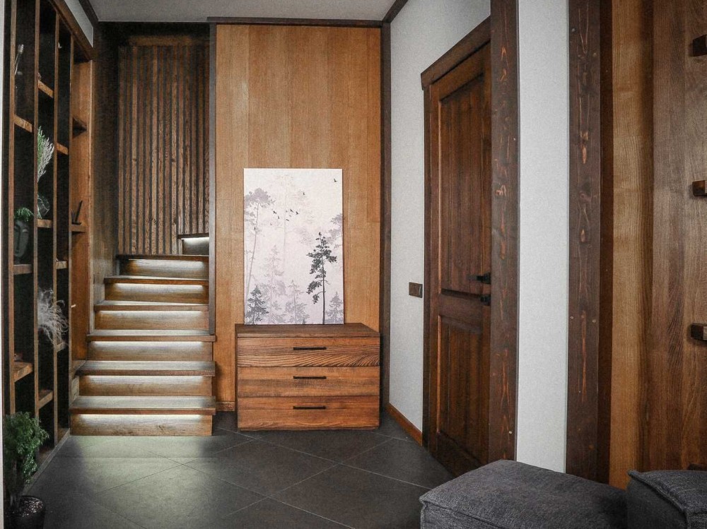 Інтер'єрні елементи будинку виготовлені з твердих порід: дуб, ясен, бук.