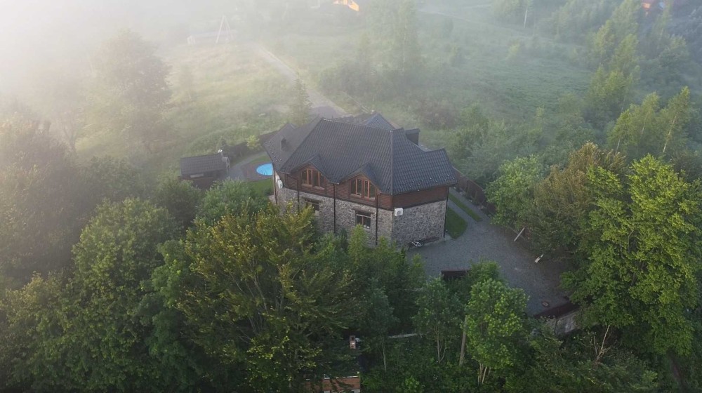 Будинок розташований в унікальному місці - на пагорбі гори. Знаходиться в оточенні гір і лісу. З вікон додатково відкривається прекрасна панорама на все місто, з балкона на гірську ущелину.