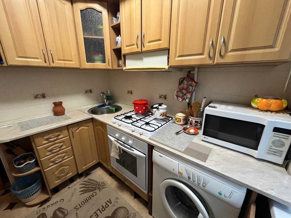 3. Охайна кухня з меблями та технікою (варильна поверхня, духова шафа, пралка)
