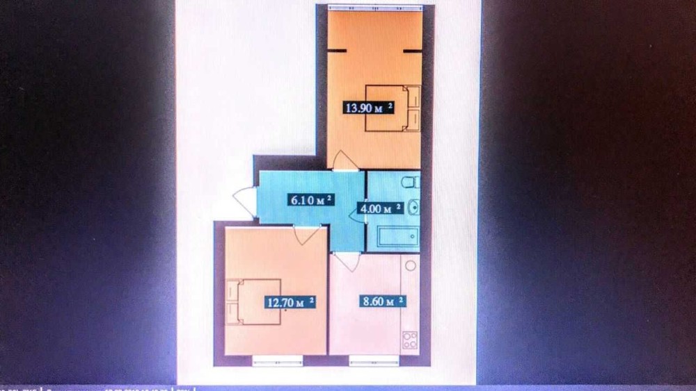 Стіни покриті чорновою штукатуркою, що дозволить вам самостійно обрати дизайн та стиль ремонту. Також виконана чистова стяжка на підлозі, яка стане прекрасною основою для влаштування підлоги на ваш смак.