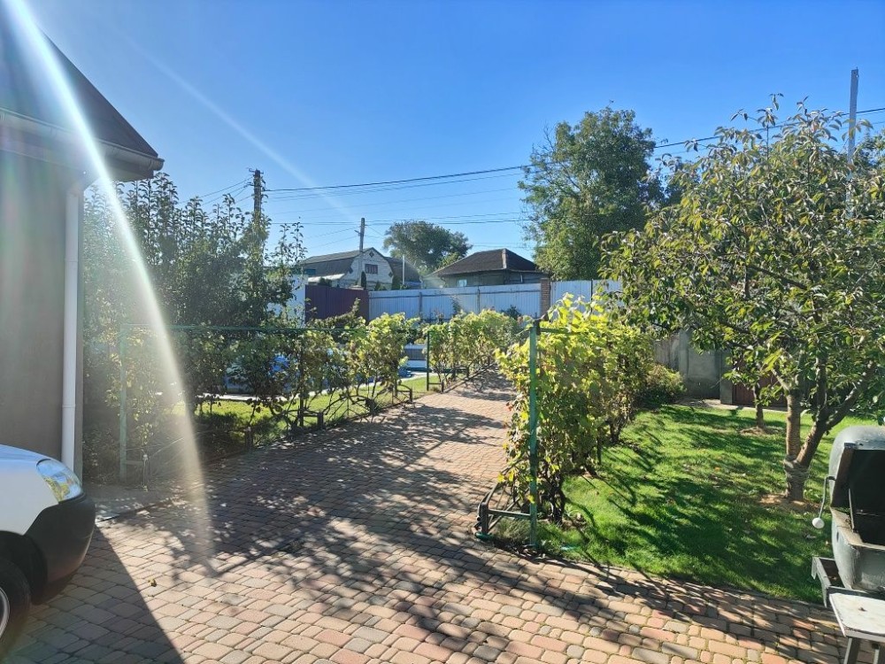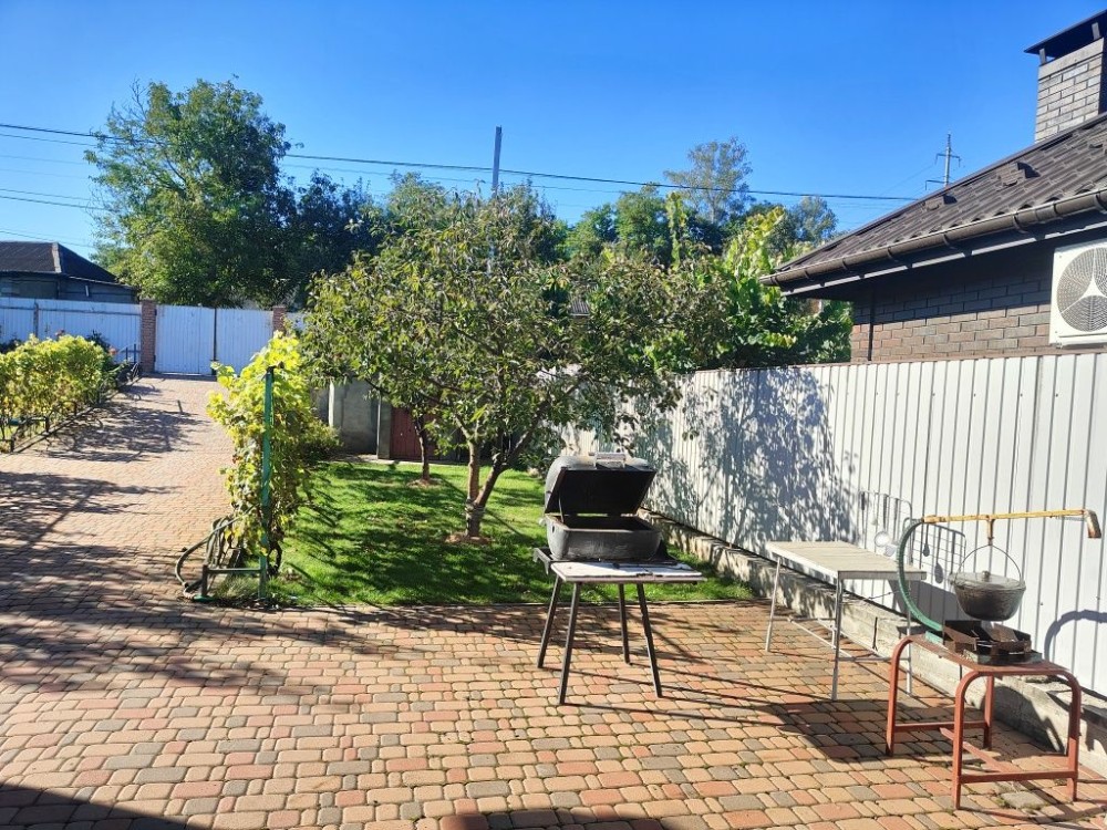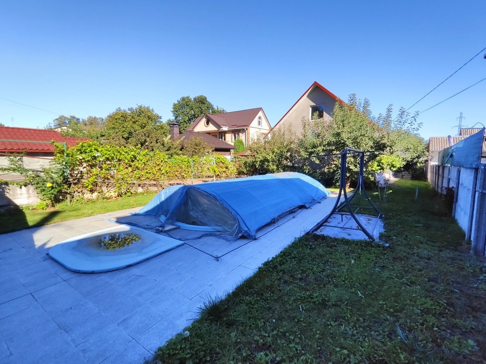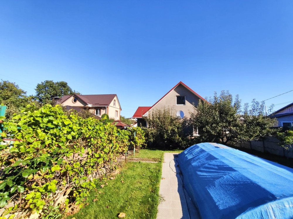 ​Територія подвір'я викладена бруківкою та добре облаштована. Тут є господарські будівлі для зберігання інвентарю, критий басейн для відпочинку в будь-яку погоду, є погріб та вольєр для собаки. На огороді встановлена система крапельного поливу, що значно полегшує догляд за рослинами.