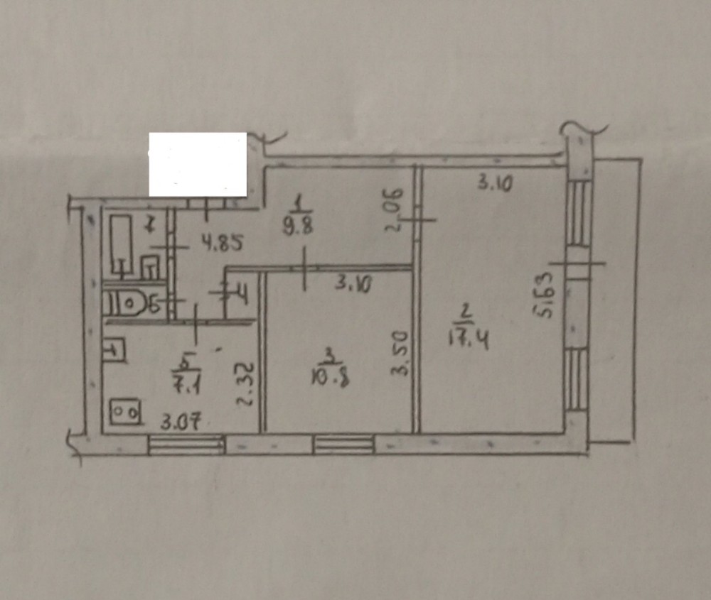 Площадь: общая 50 кв метров, жилая 28 , кухня 7 кв метров.