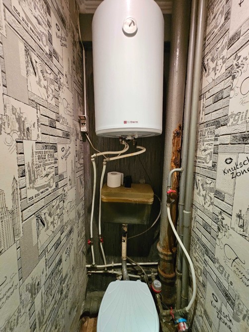 Санузел раздельный, сантехника в рабочем состоянии, дополнительно установлен бойлер.
