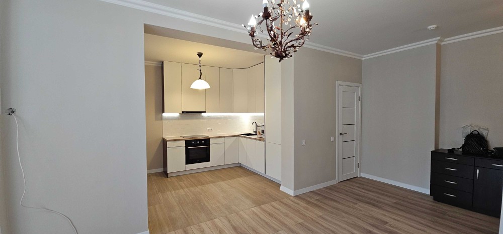 Продаю 1 кім квартиру, ЖК "Ольжин Град", проспект Шевченка, 58/26/15, євроремонт (ніхто не проживав), вбудовані кухонні меблі, ел. техніка, посудомийка, пральна машина, холодильник, бойлер, мебльована гардеробна, окрема спальна кімната. Неймовірно чарівний панорамний вигляд на Київьке море. Найкраща пропозиція!