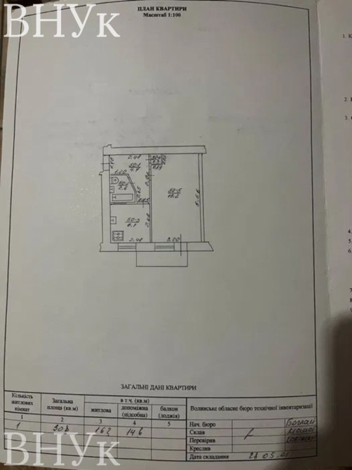 Загальна площа: 30,8 м² (без урахування балкону).