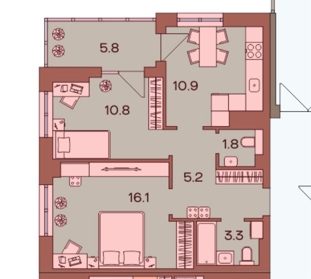 • Общая площадь 56.3 м2
