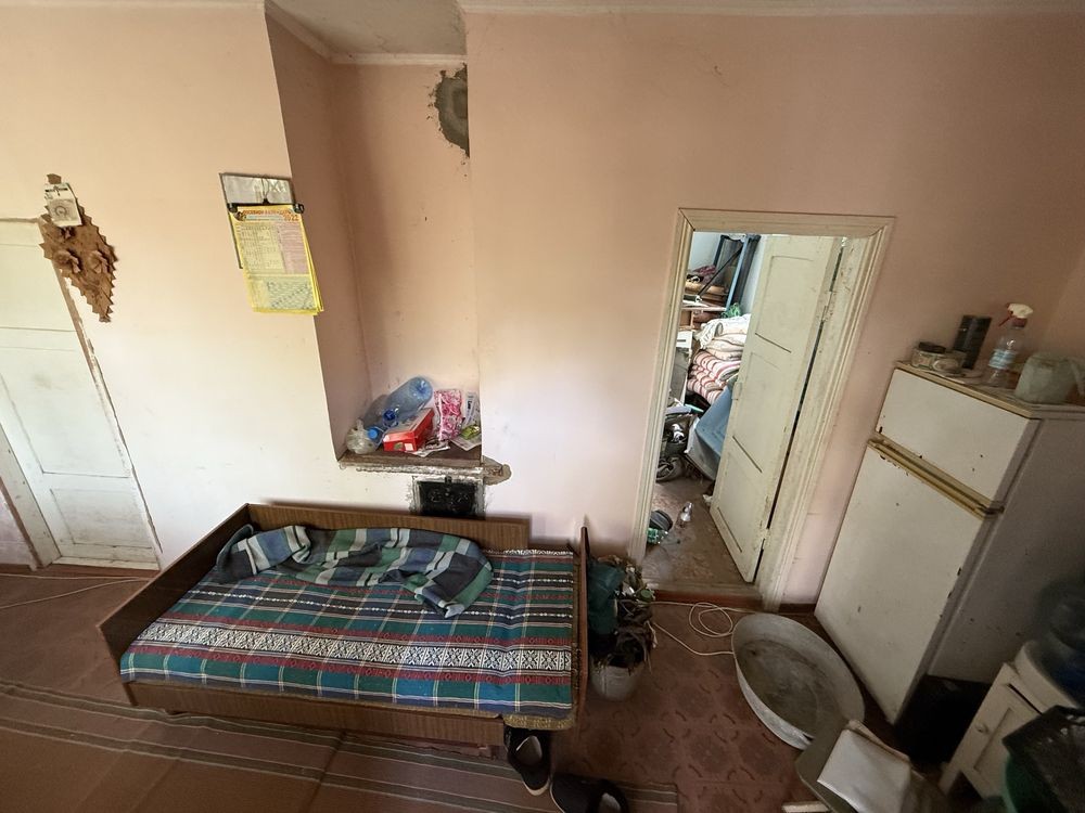 В доме на первом этаже две раздельные комнаты и кухня, есть подвал. Окна металлопластиковые с решётками.