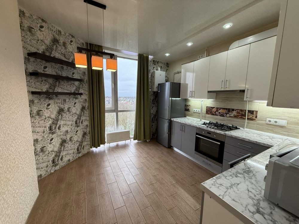 Укомплектованная бытовой техникой кухня с видом на парк. Две раздельные спальни. Балкон. Индивидуальное газовое отопление. Система охраны остается. Продумана и грамотно выведена проводка на всю бытовую технику в электро щит.