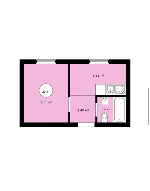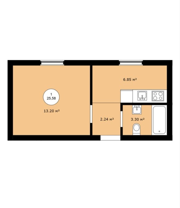 • Общая площадь 25 м2