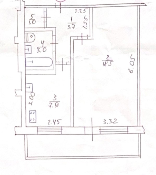• Площадь кухни 7.9 м2