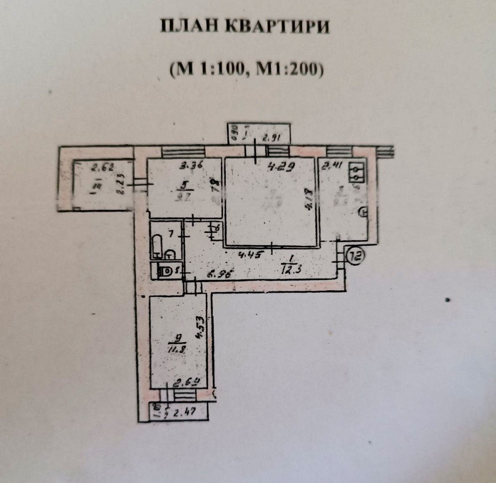 Кімнати: 18 м2, 12м2, 9 м2.