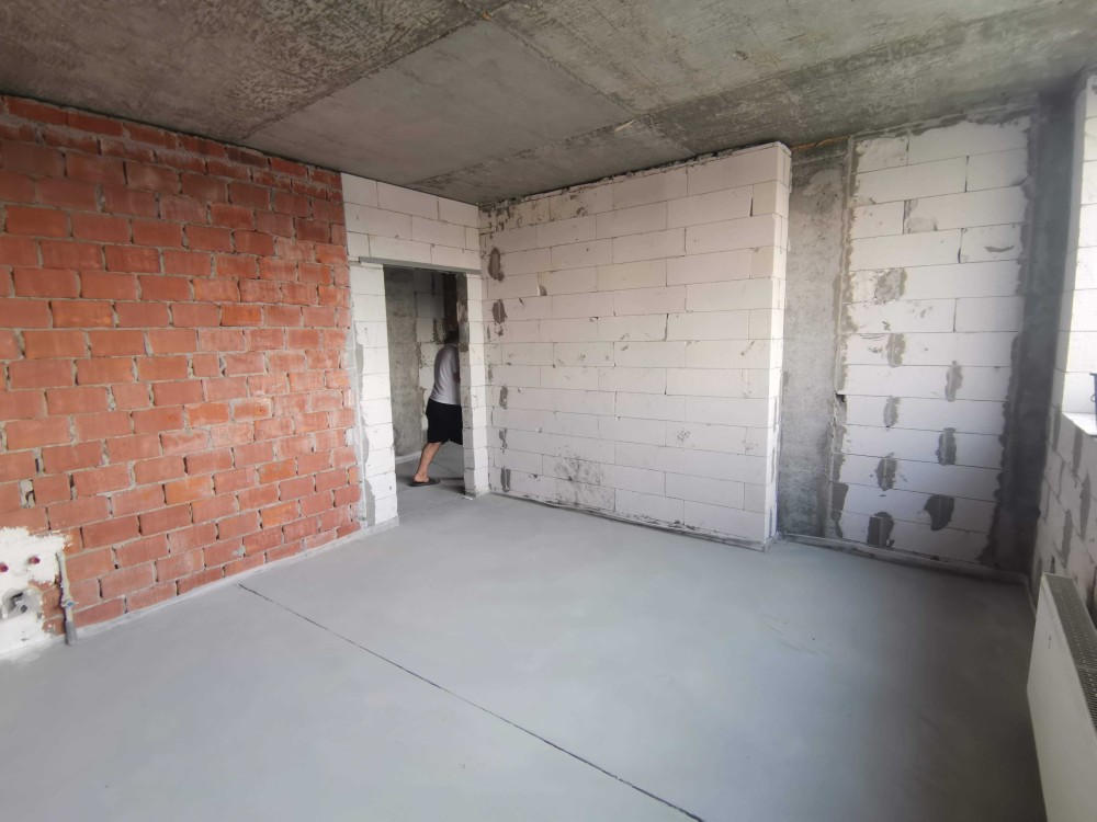 Сделана стяжка, зонированая - кухня, ванная и комната.