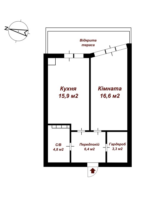 Квартира розташована на 2-му поверсі 11-поверхового будинку. Загальна площа – 50м2; житлова–17м2; кухня – 16 м2. Висота стелі – 2,77 м. Простора квартира з продуманим плануванням: великий гардероб, зручний передпокій, санвузол, а також тераса з виходом і з кухні, і з кімнати.