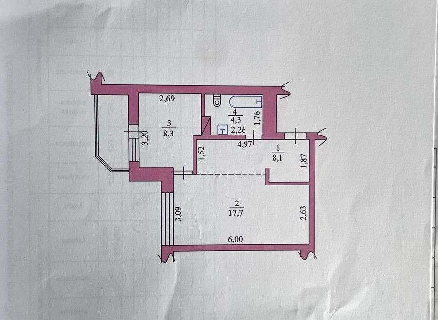 Загальна площа - 42.50 кв.м:
