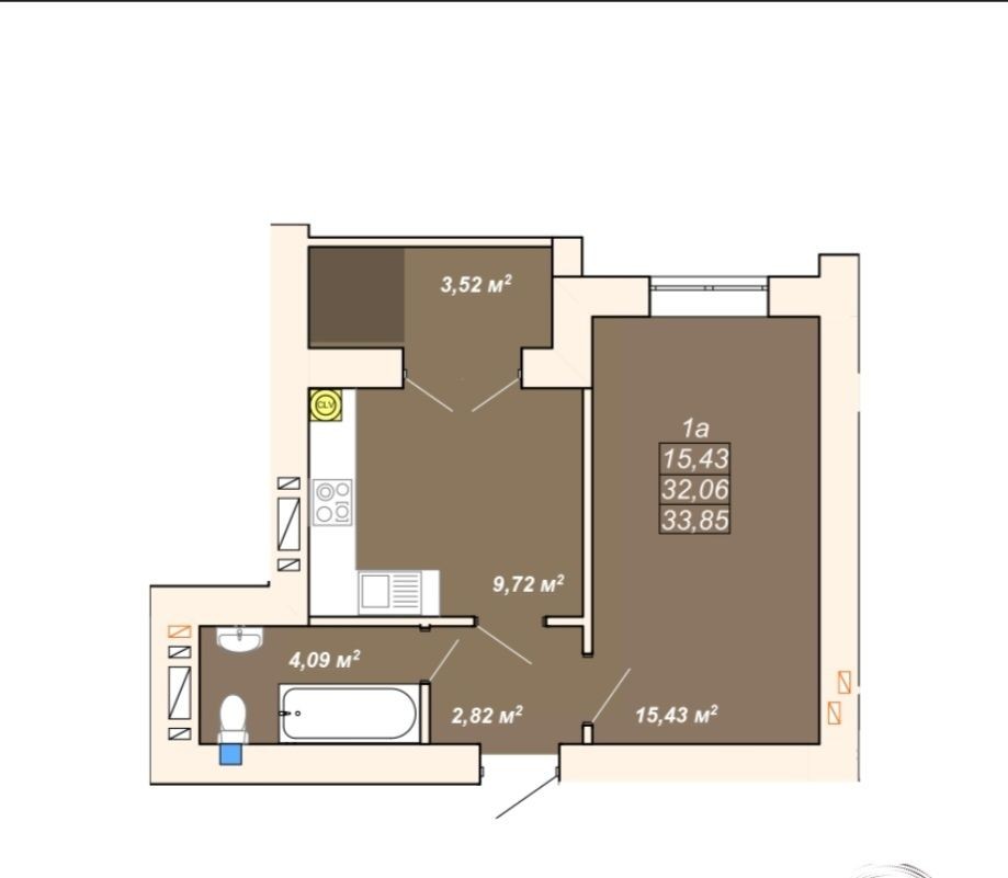 • Общая площадь 34 м2