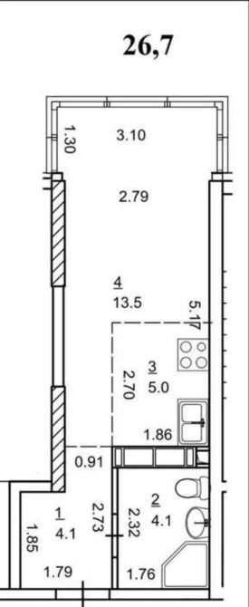 • Общая площадь 27 м2