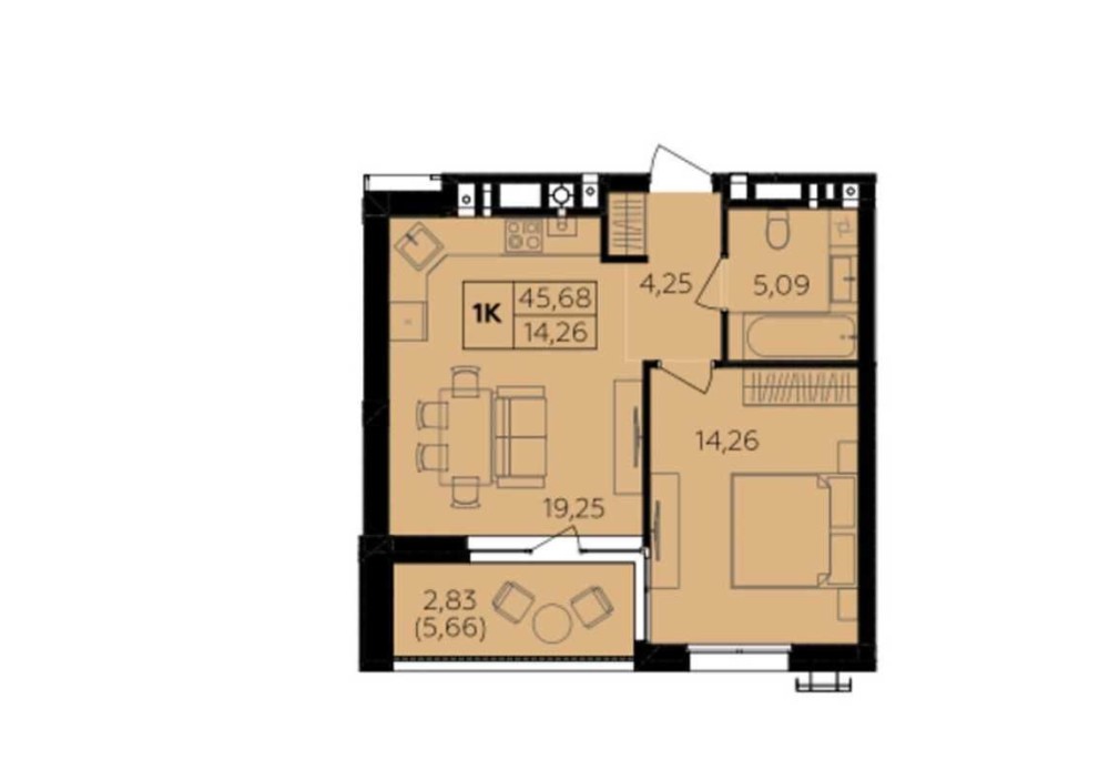 • Общая площадь 46 м2