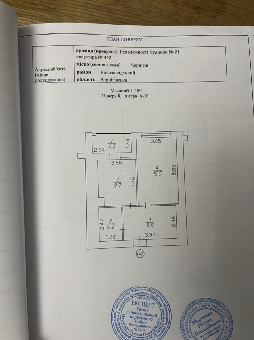 Загальна площа квартири 43,5м2 кухня 10м2