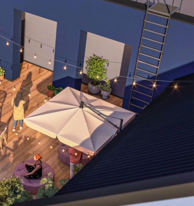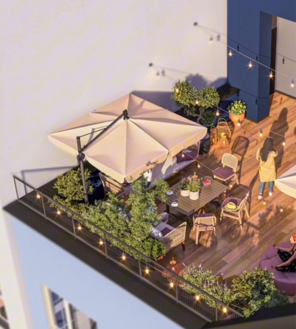 Квартира розташована в цегляній новобудові, з оглядовою терасою на даху,
