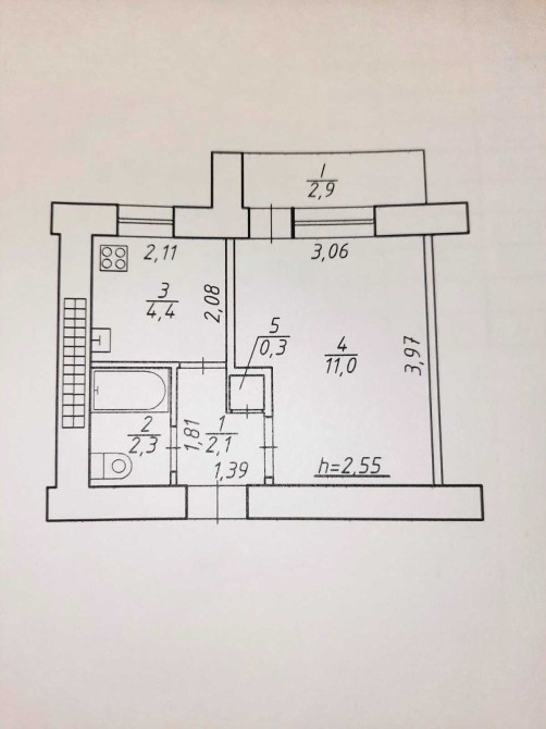 • Площадь кухни 4.4 м2
