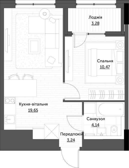 Квартира 1 кімната + кухня-студія.