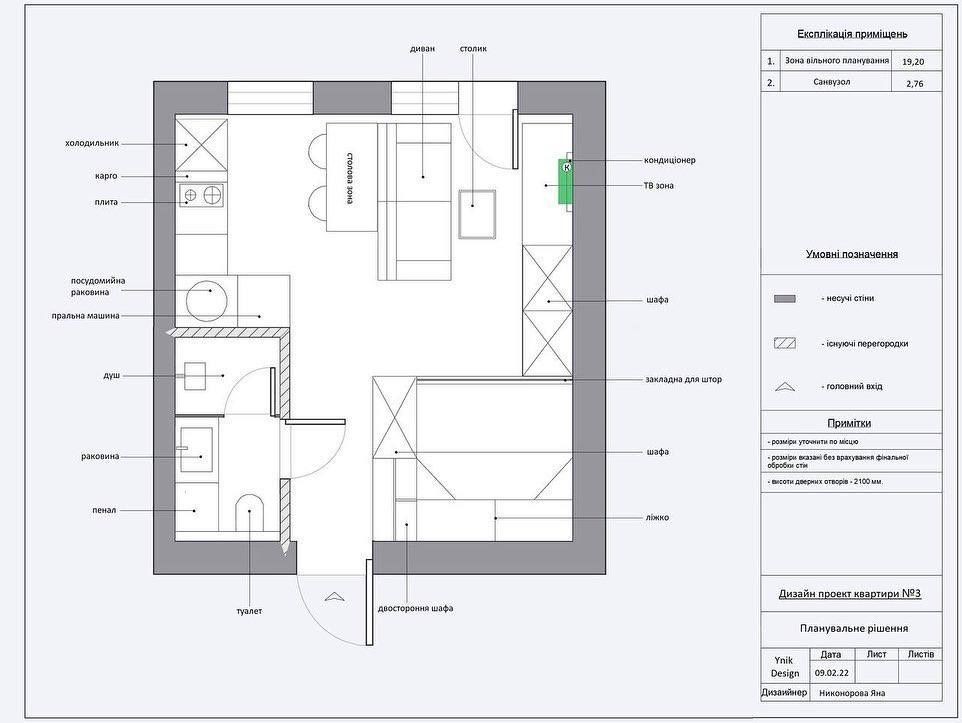 • Общая площадь 20 м2