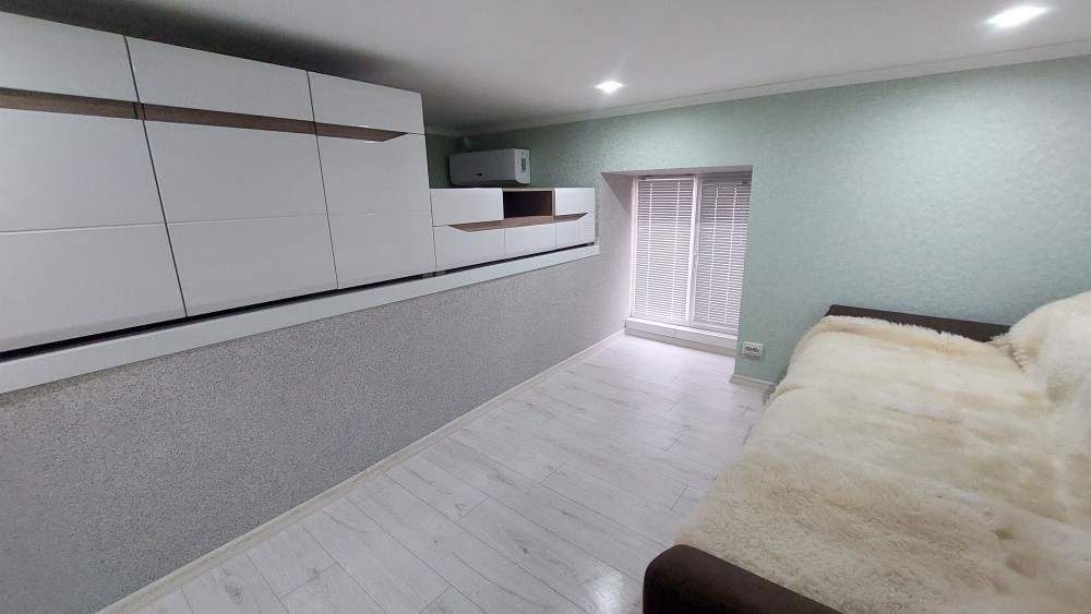 Продам 1-кімнатну квартиру в двох рівнях з ремонтом, меблями та технікою. Загальна площа 37м.кв. 1 поверх двоповерхового будинку. Центр. Вул.Київська,8. Укргазбанк. Є своє паркування та двір. Квартира складається із двох поверхів. На першому розташована кухня-їдальня, передпокій та суміщений санвузол. З передпокою йдуть дерев'яни сходи на другий поверх (спальня). На кожному поверсі є вікно. Вікна пластикові. Є кондиціонер, тепло-холод. На першому поверсі тепла підлога, стоїть проточний електрокотел, який працює як на гарячу воду так і на опалення. Є підсобне приміщення перед входом у квартиру. Усі блага міста у пішій доступності.