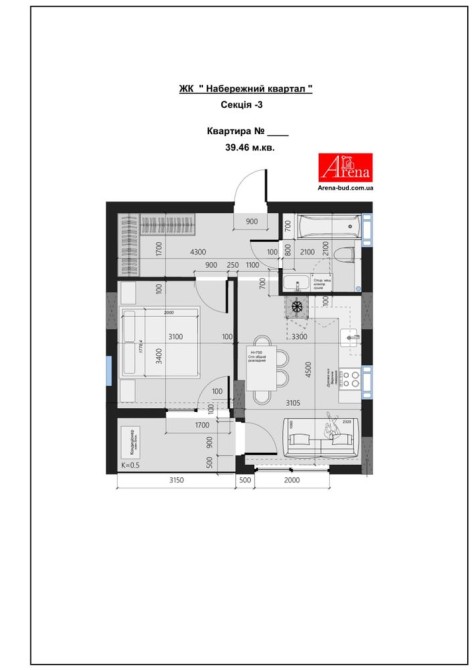 • Общая площадь 39.46 м2