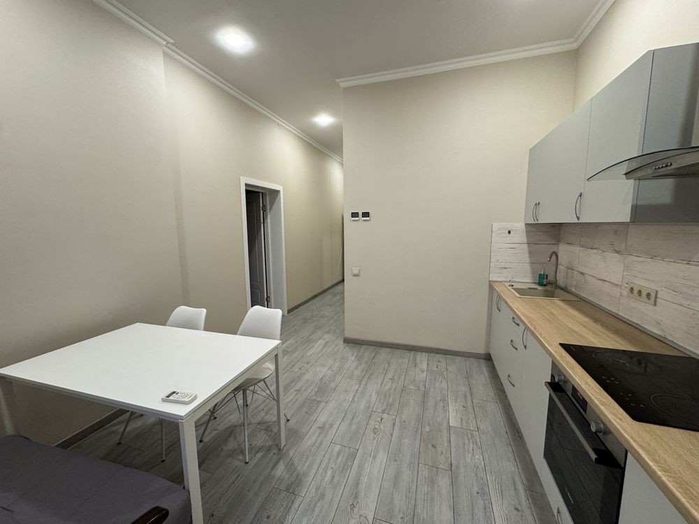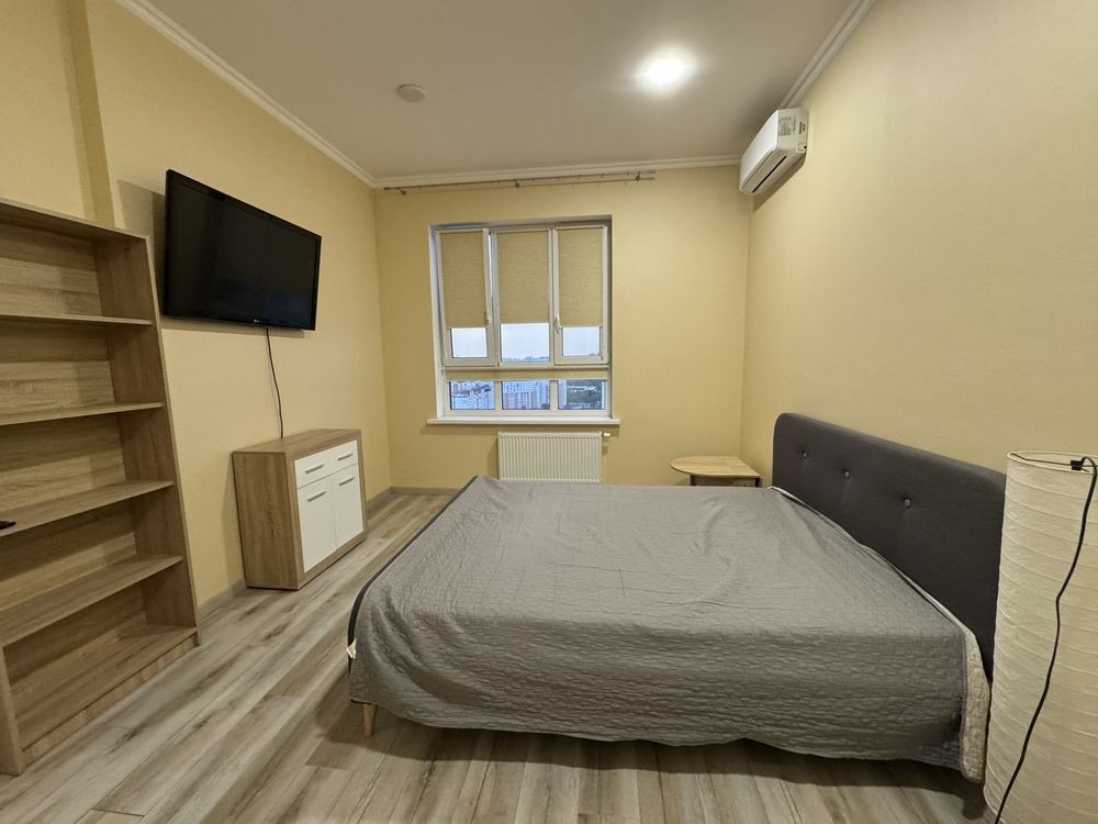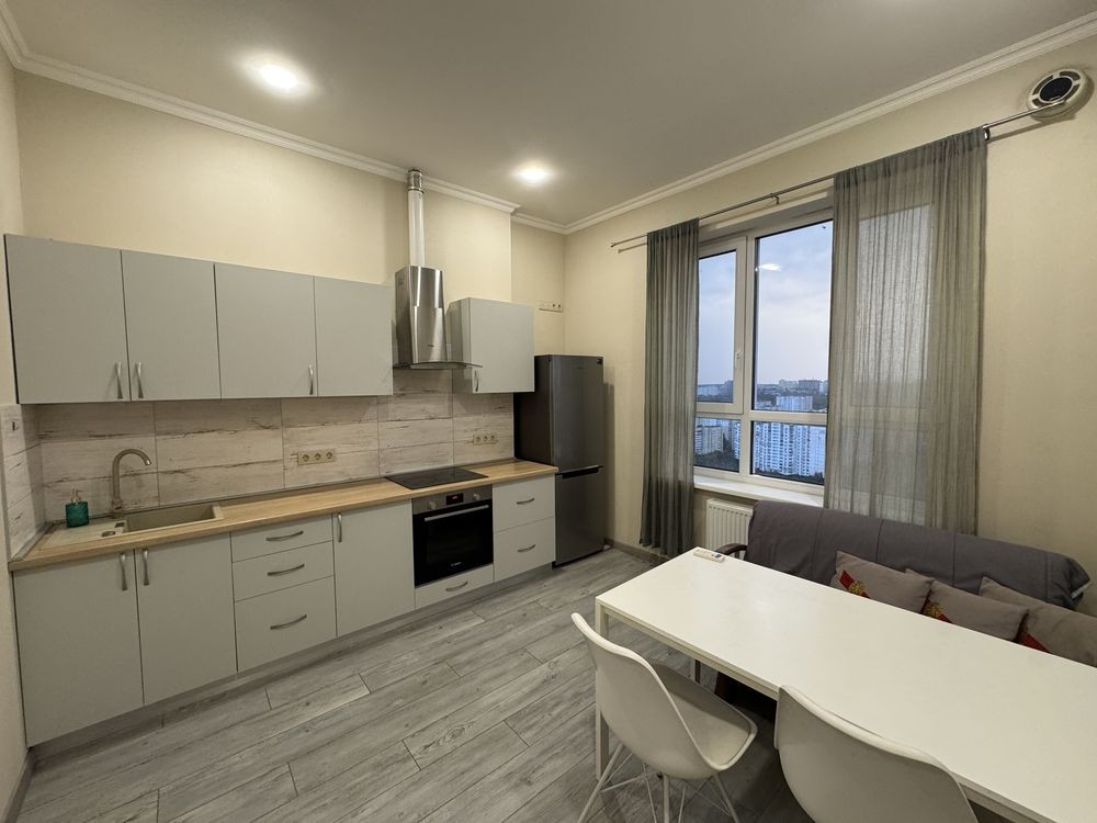 Пропонуємо до вашої уваги простору та стильну 1-кімнатну квартиру, розташовану на 26-му поверсі сучасного 27-поверхового будинку. Завдяки панорамним вікнам квартира наповнена світлом, а висота стелі 3,30 м додає простору.