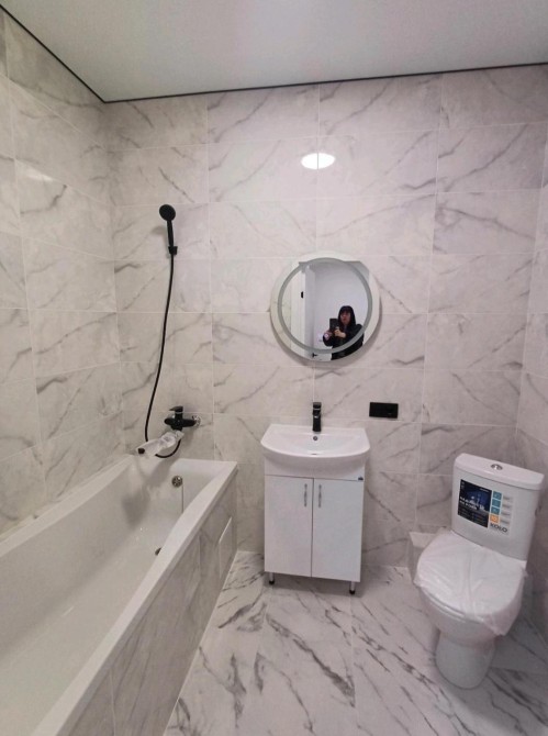 Санвузол обкладений імпортною плиткою.