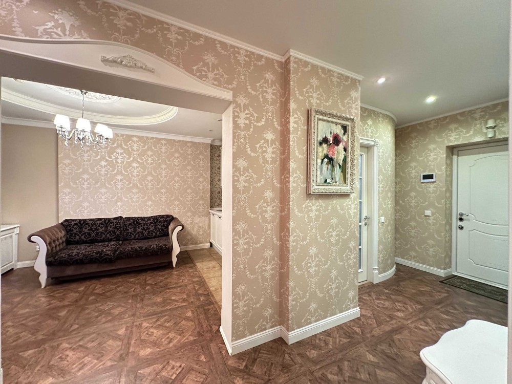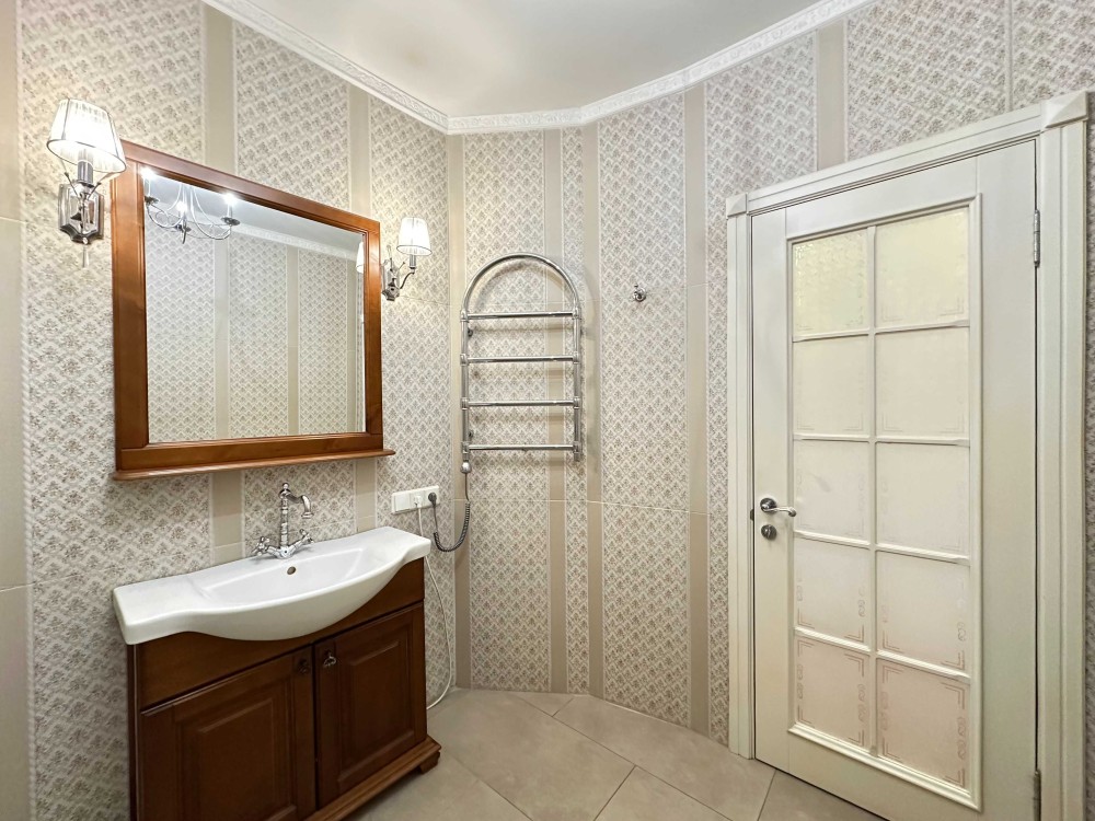 Квартира полностью меблированная, оборудована абсолютно всей техникой: встроенная кухня, вытяжка, электроплита+духовка, два кондиционера, телевизор плазма, холодильник+морозильная камера, стиральная машина, полы с подогревом, электрочайник, два шкафа-купе, двухспальная кровать, диван, пуфик, бойлер, утюг, гладильная доска, сушилка, роутер WI-FI+ЛЭД, в доме три скоростных лифта, охрана, видеонаблюдения, наземный паркинг.
